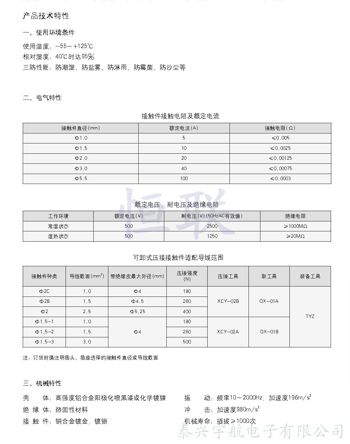 TY系列圓形電連接器采用高可靠的雙曲面線簧作為接觸件,產(chǎn)品具有接觸電阻小、插拔力柔和、抗振動(dòng)耐沖擊、高可靠等優(yōu)點(diǎn),產(chǎn)品主要技術(shù)指標(biāo)符合鐵道部標(biāo)準(zhǔn)TB/T2716-1996。 該系列電連接器插頭與插座的連接為卡口式快速連接,使用簡(jiǎn)單,操用方便,產(chǎn)品被廣泛使用于鐵路、電力等電氣及電子設(shè)備中的連接。根據(jù)客戶要求,插頭、插座既可裝針,也可裝孔