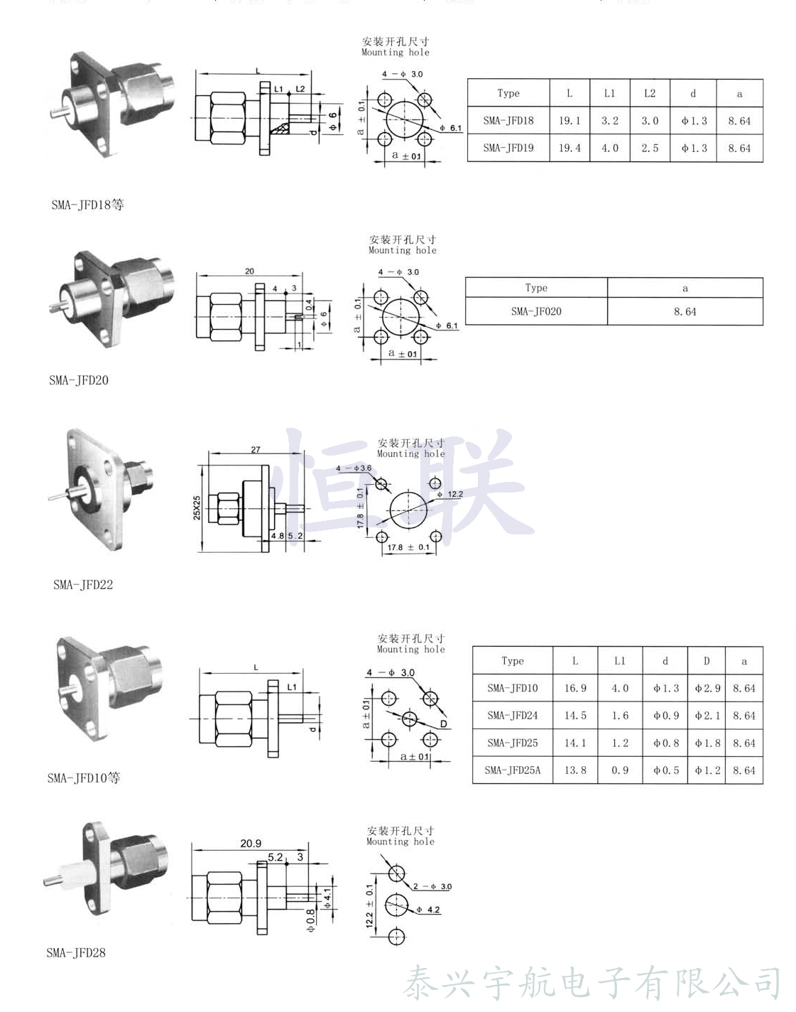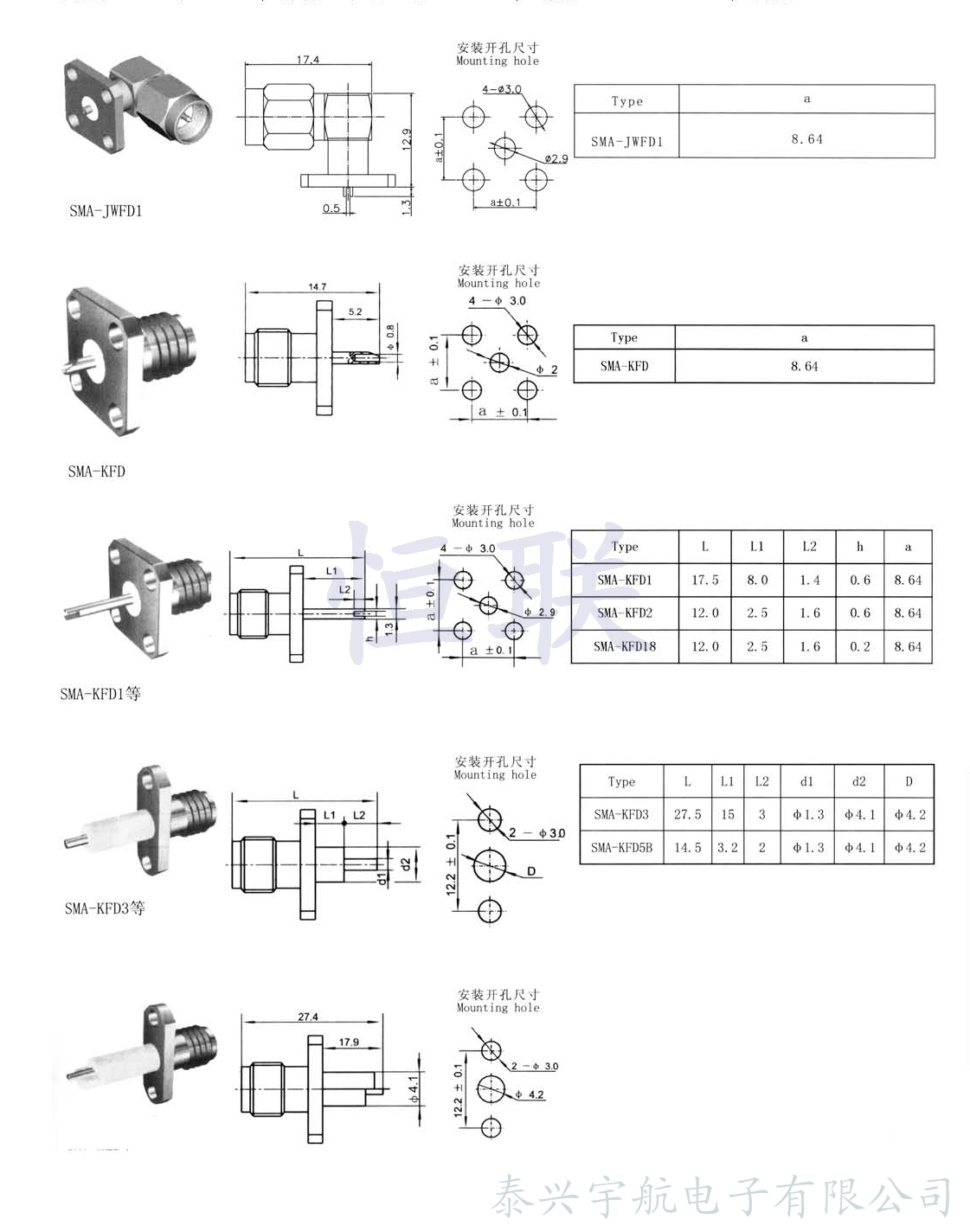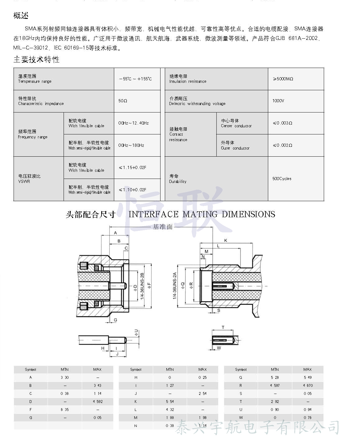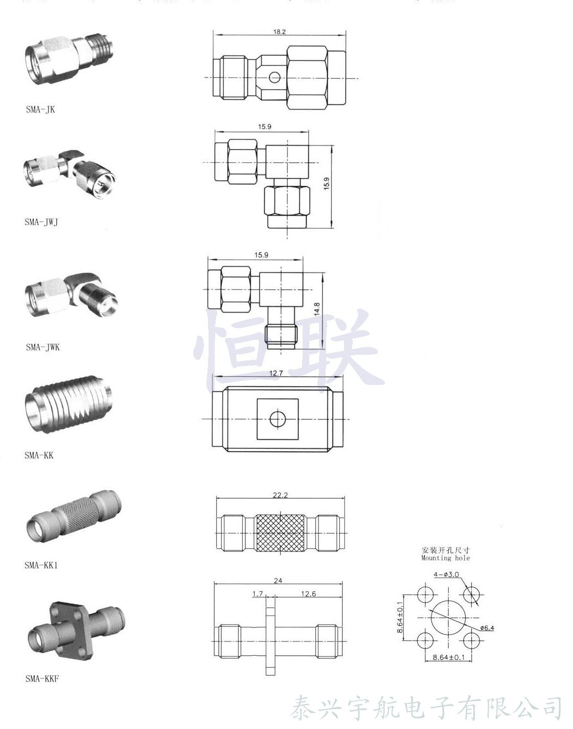 SMA系列產(chǎn)品是一種應(yīng)用廣泛的小型螺紋連接的同軸連接器,它具有頻帶寬、性能優(yōu)、高可靠、壽命長(zhǎng)的特點(diǎn)。適用于微波設(shè)備和數(shù)字通信系統(tǒng)的射頻回路中連接射頻電纜或微帶線。