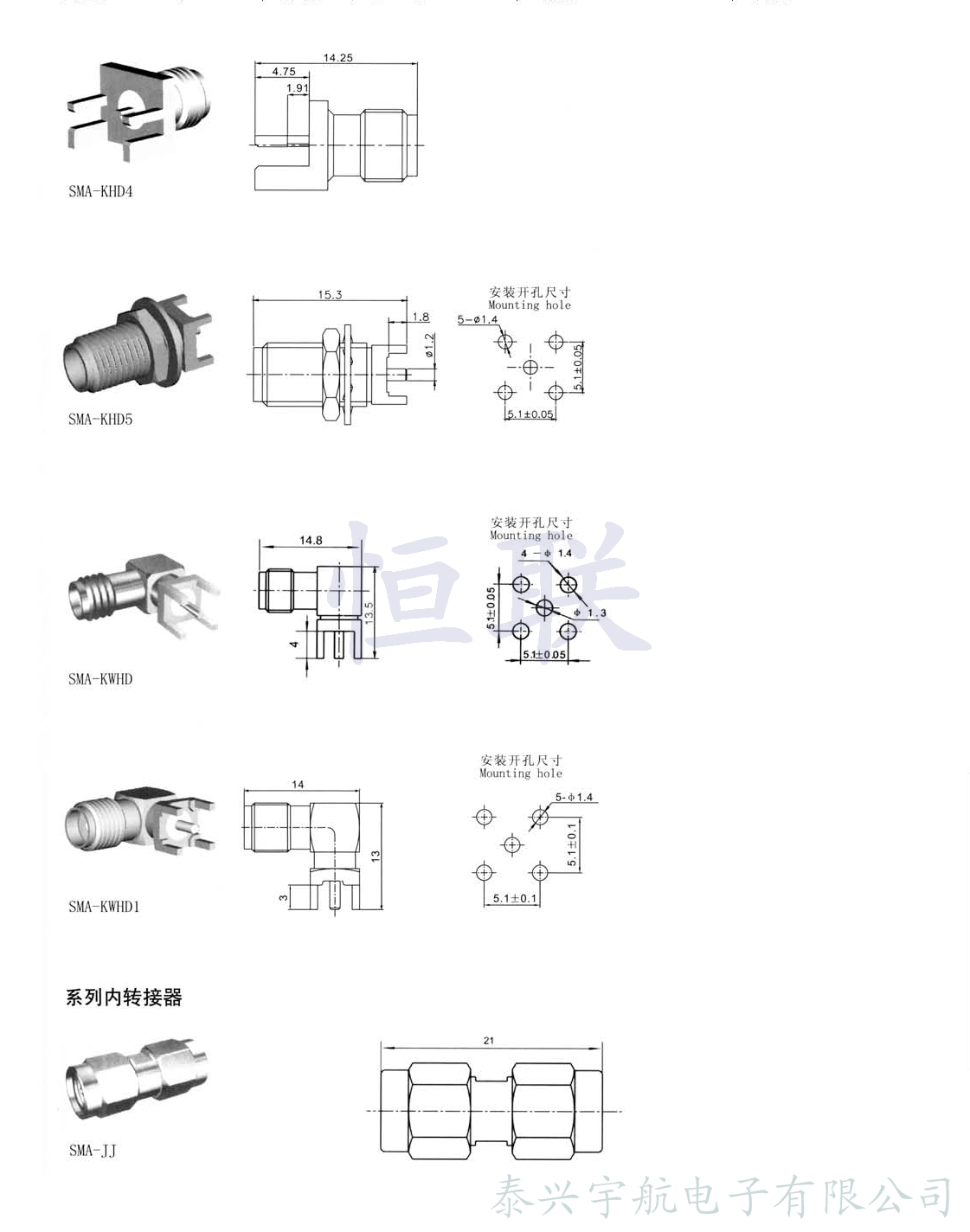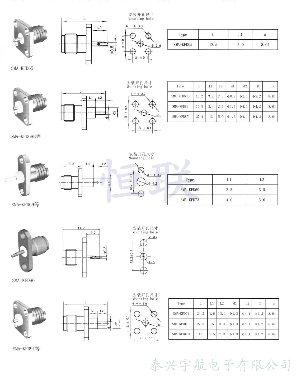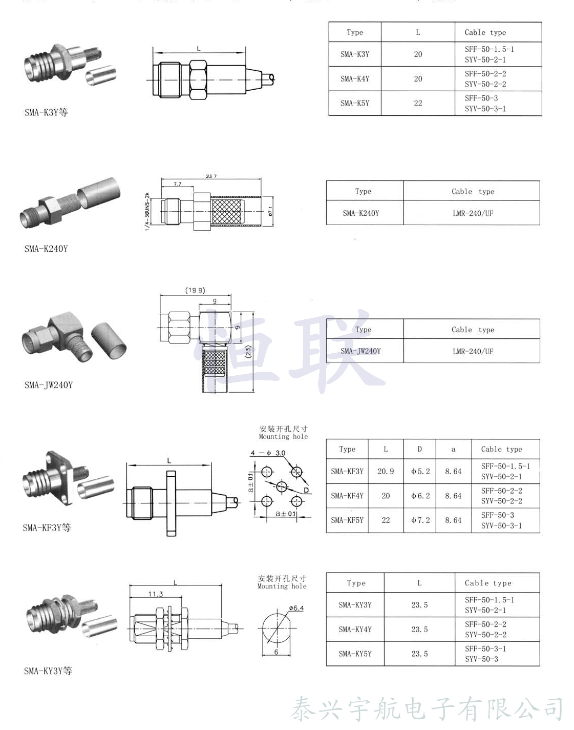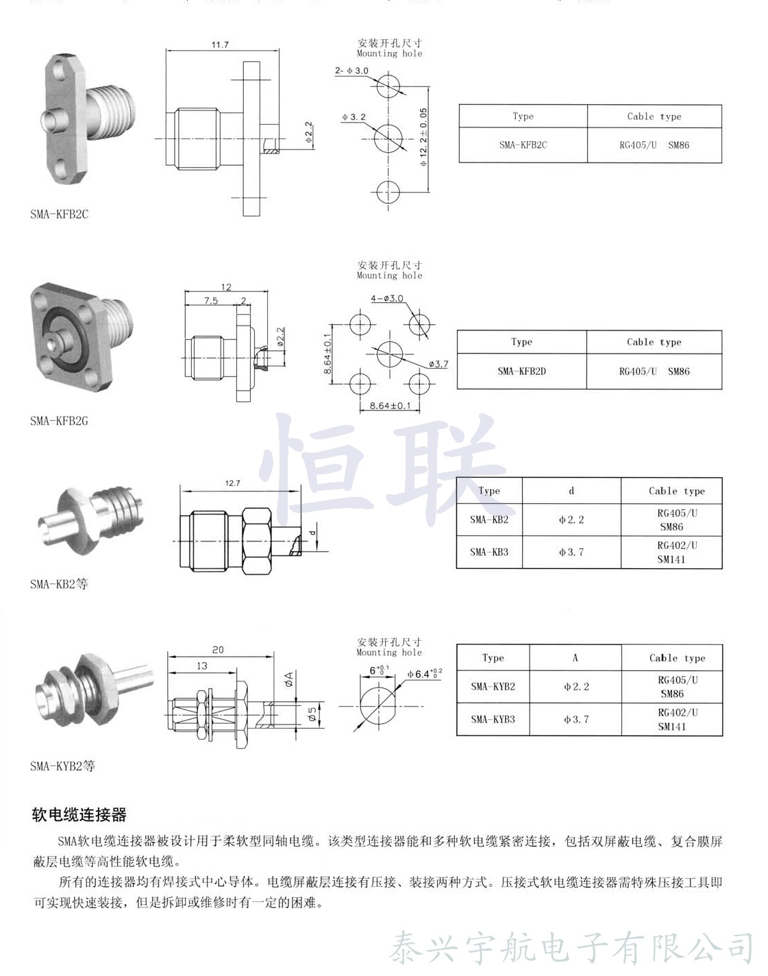 SMA系列產(chǎn)品是一種應(yīng)用廣泛的小型螺紋連接的同軸連接器,它具有頻帶寬、性能優(yōu)、高可靠、壽命長(zhǎng)的特點(diǎn)。適用于微波設(shè)備和數(shù)字通信系統(tǒng)的射頻回路中連接射頻電纜或微帶線。