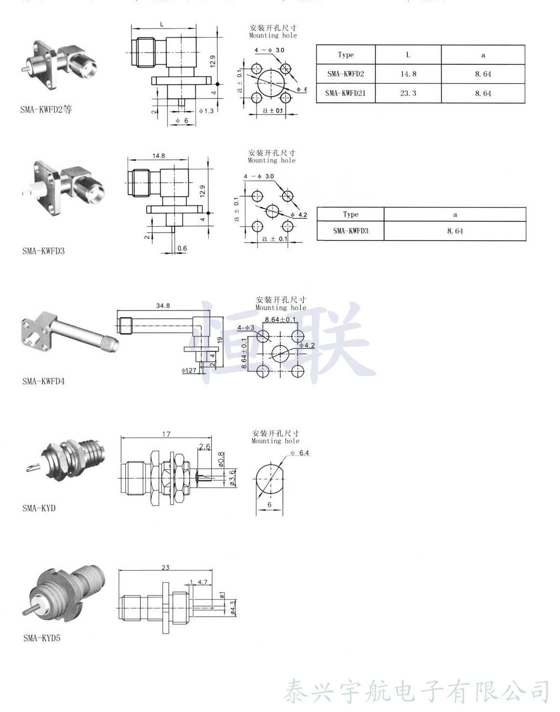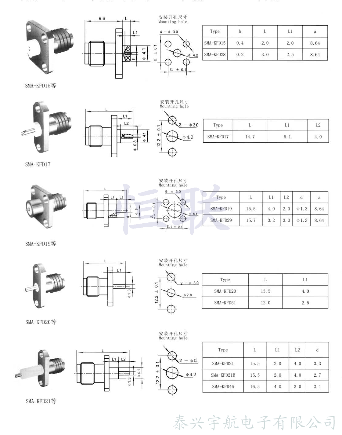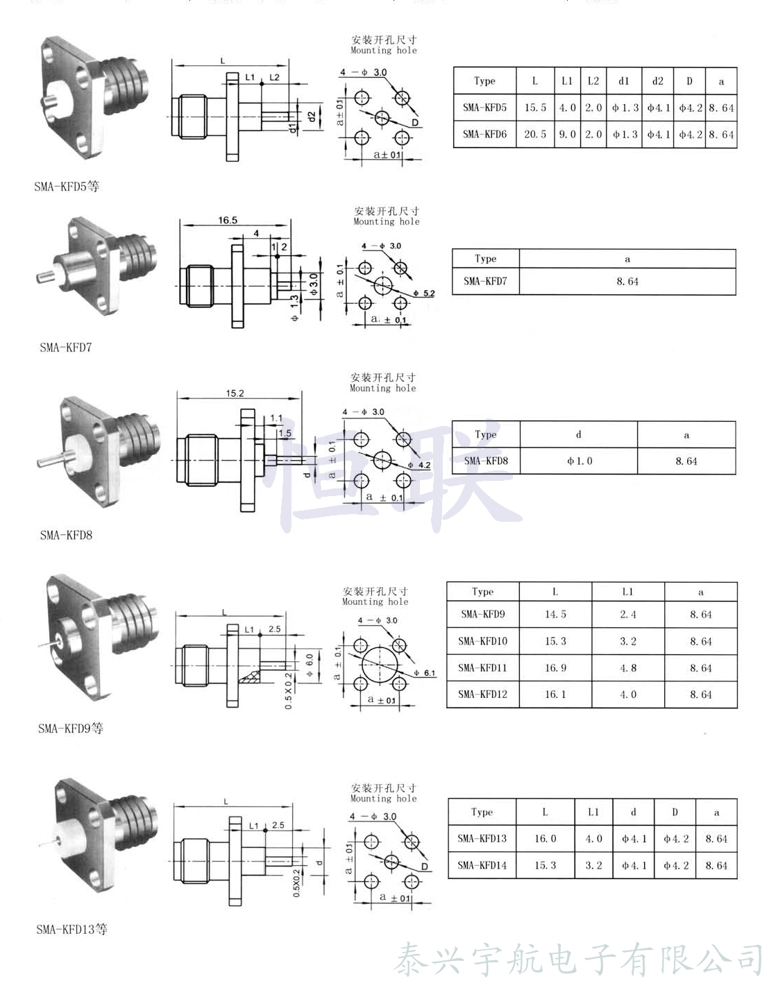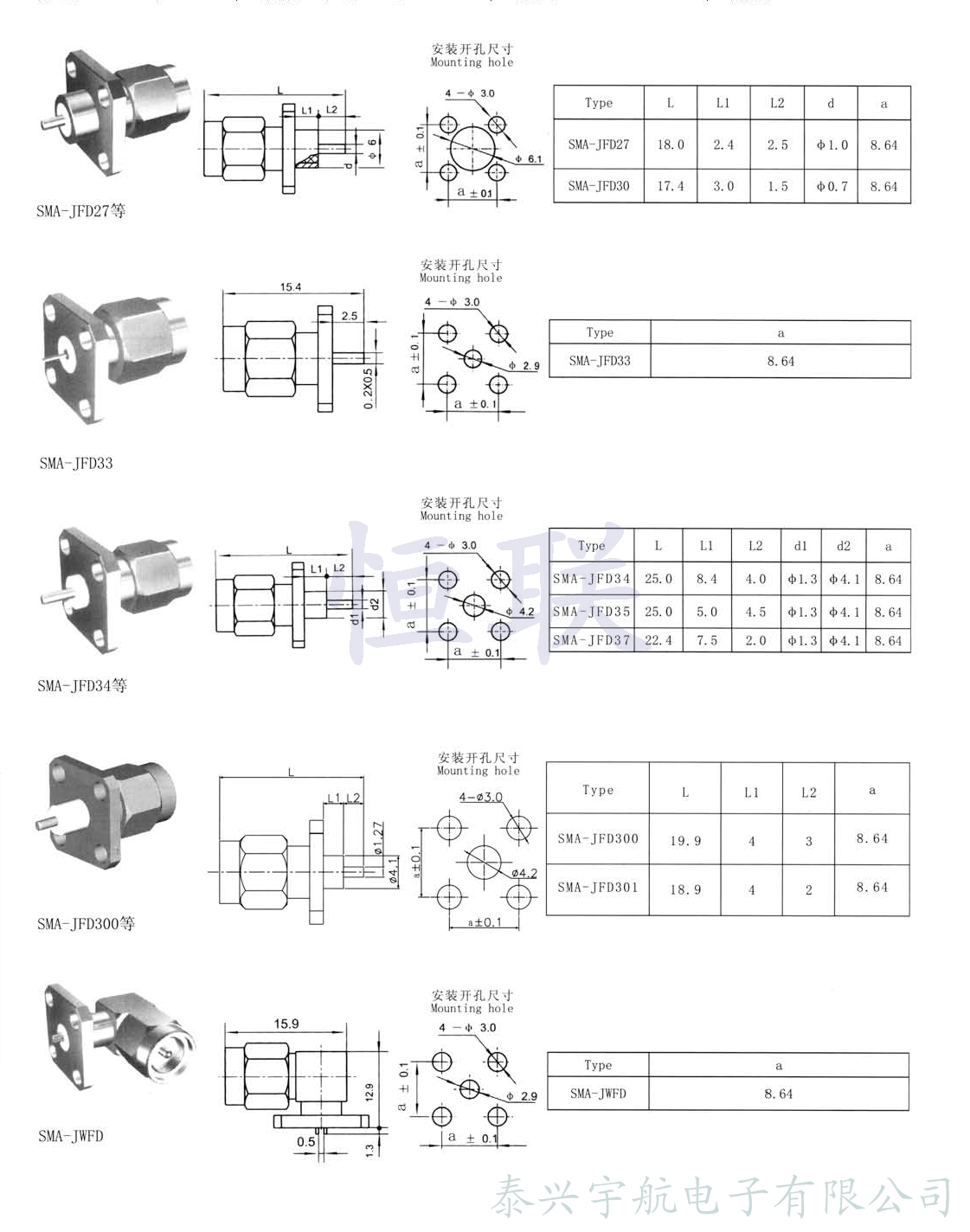 SMA系列產(chǎn)品是一種應(yīng)用廣泛的小型螺紋連接的同軸連接器,它具有頻帶寬、性能優(yōu)、高可靠、壽命長(zhǎng)的特點(diǎn)。適用于微波設(shè)備和數(shù)字通信系統(tǒng)的射頻回路中連接射頻電纜或微帶線。