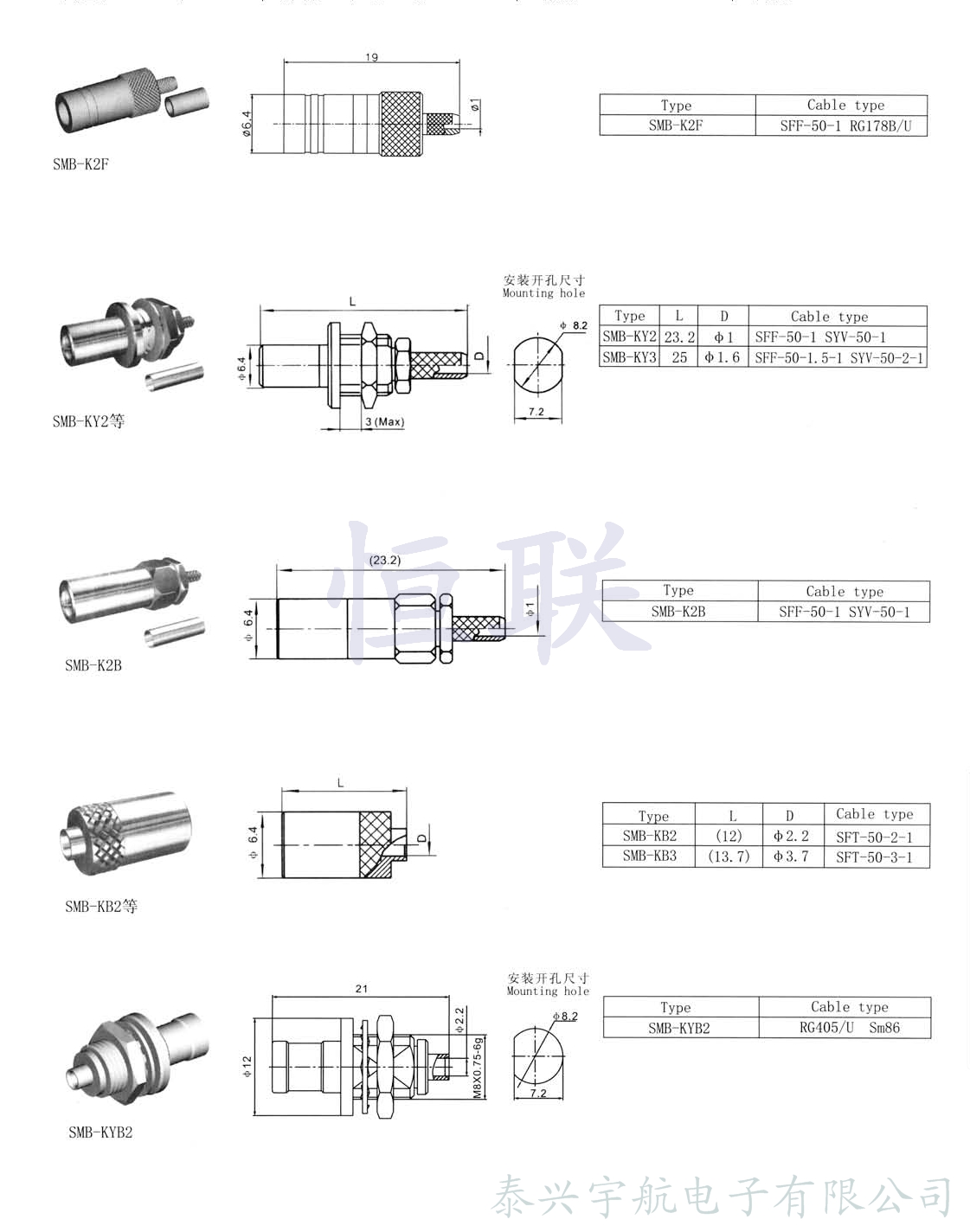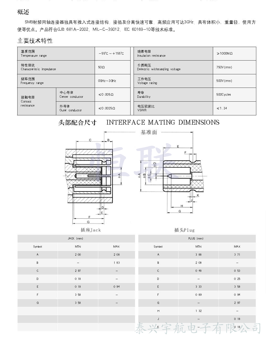 SMB系列射頻同軸連接器是一種具有推入鎖緊機(jī)構(gòu)的連接器,它的界面尺寸符合MIL-C-39012和IE169-10的規(guī)定,因此可以與國(guó)內(nèi)外同類產(chǎn)品互配使用。
