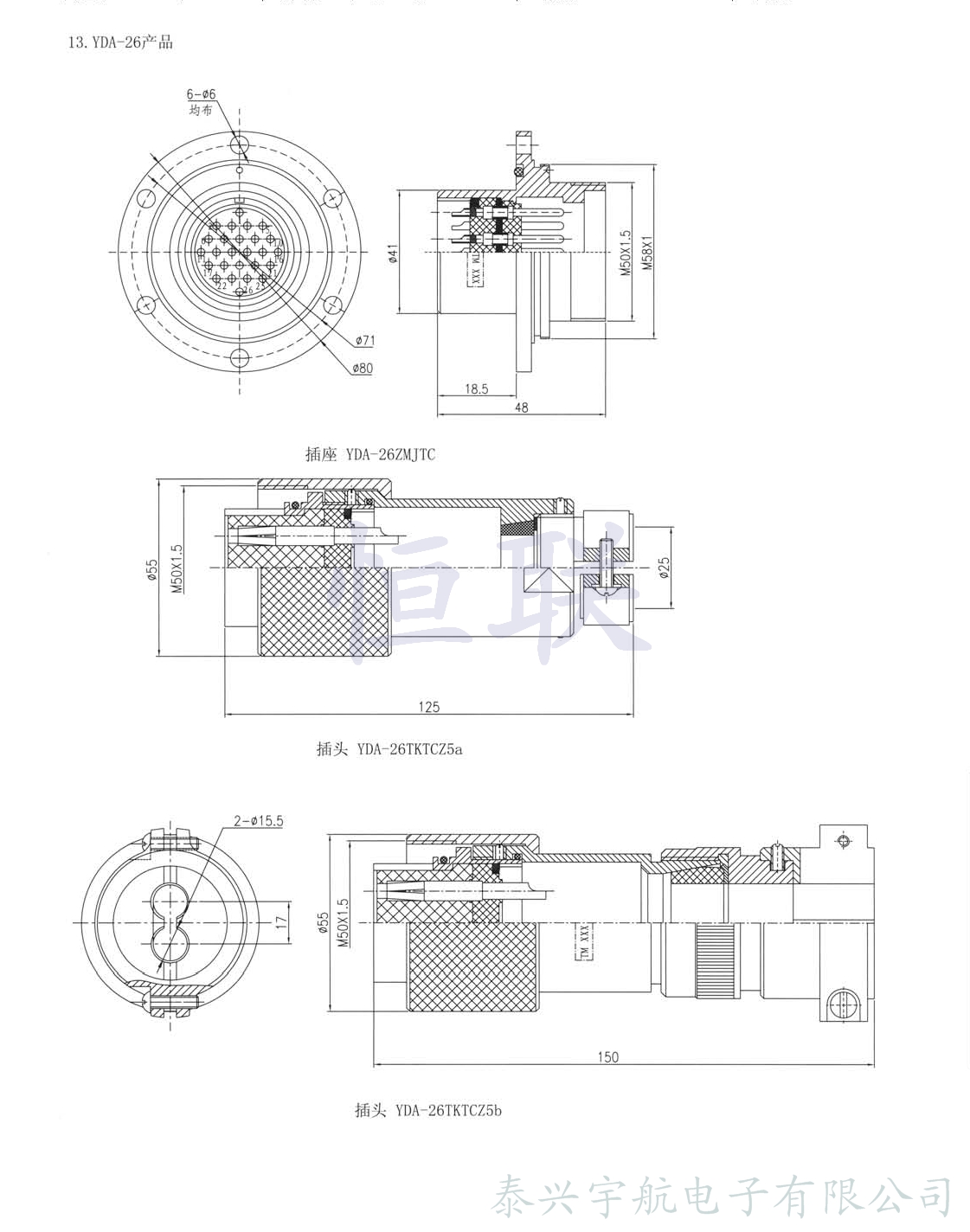 YDA系列圓形電力專用電連接器,是城鄉(xiāng)電網(wǎng)改造中柱上真空自動(dòng)配電開關(guān)的專用產(chǎn)品,可與日本東芝的同類產(chǎn)品互換。該型號(hào)系列產(chǎn)品的外殼采用銅合金制造,表面采用能耐嚴(yán)重腐蝕的鎳鉻復(fù)鍍層,接觸件全部采用鍍金,其端接方式為焊接,插頭與插座采用螺紋連接 。