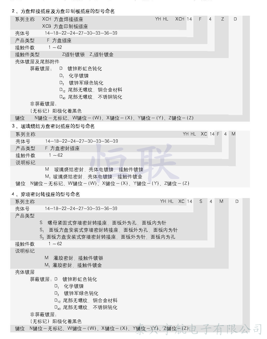 XC系列圓形電連接器( 航空插頭 )為低頻類電連接器。九種殼體號;4種接觸件規(guī)格;32種孔位排列。從1孔到62孔。采用卡口式快速連接系統(tǒng),操作方便,連接可靠,耐振動,抗沖擊。五鍵槽定位,具有盲插和防誤插功能。高可靠的雙曲面線簧孔使連接器插拔柔和,接觸電阻小,工作可靠。插座共有五種結(jié)構(gòu)形式選用。符合國家軍用標準GJB2889。廣泛用于航天,航空,航海、鐵路、野戰(zhàn)通訊及各種儀器、儀表等設(shè)備中。