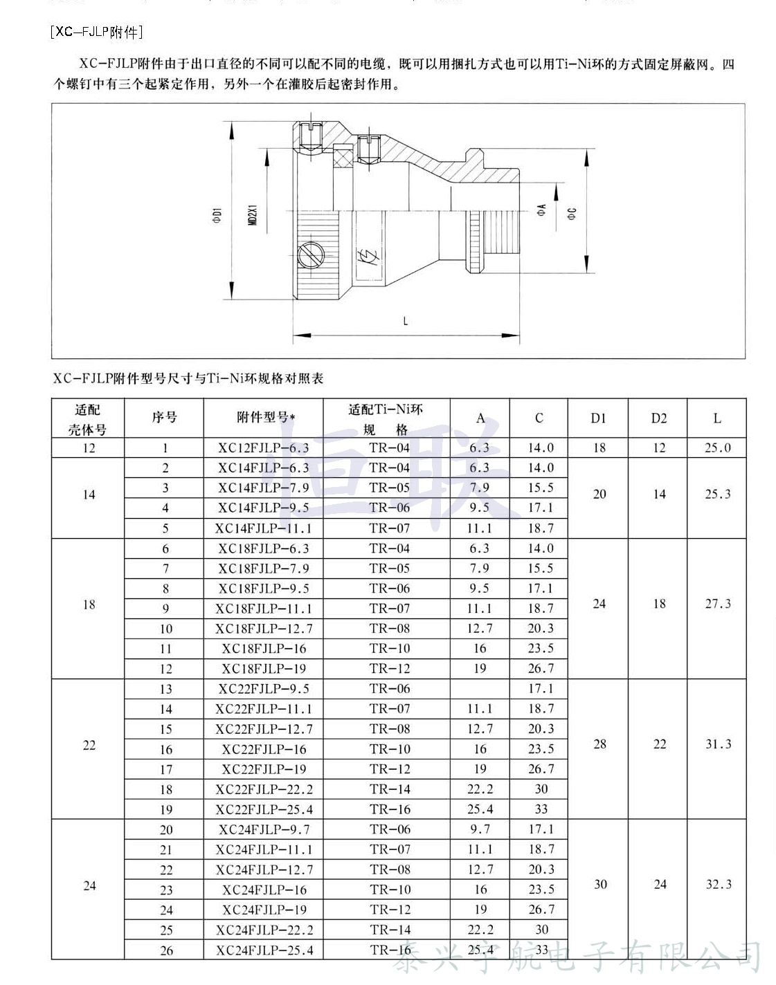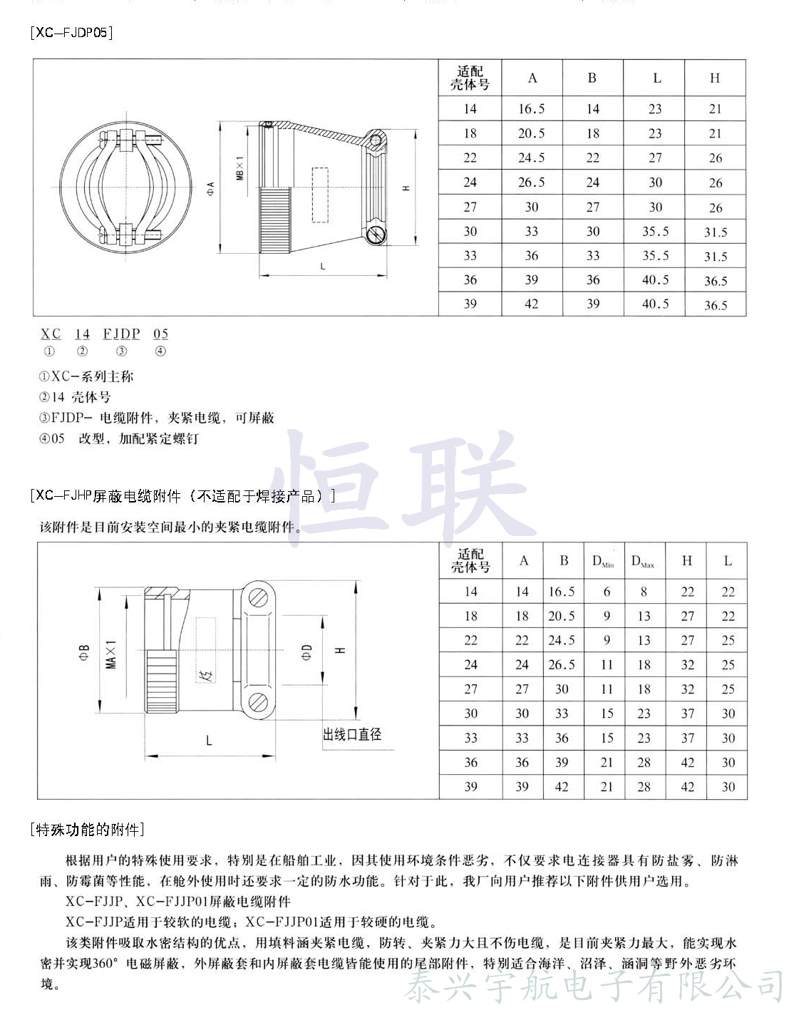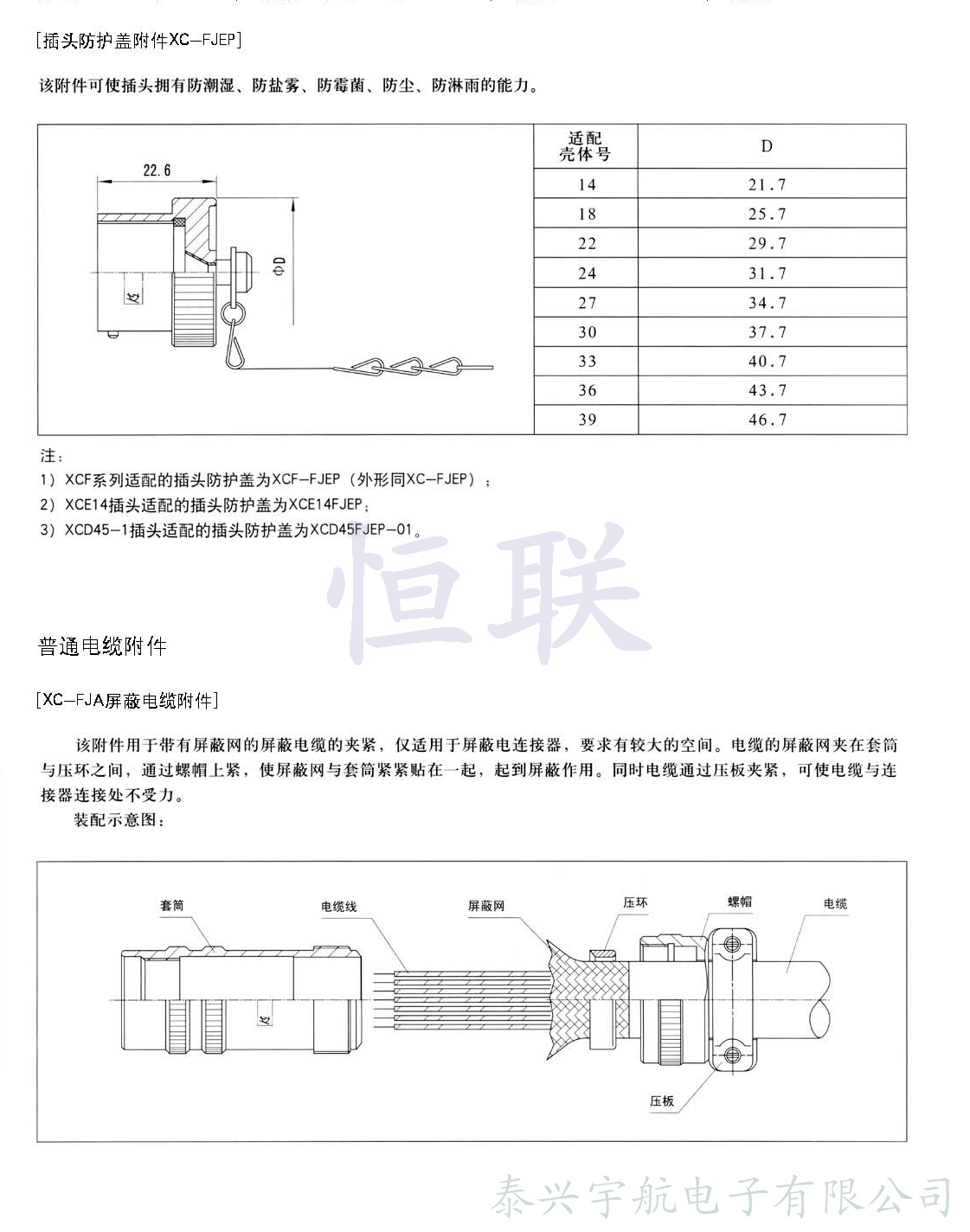 XC系列電連接器除插座、插頭已配直式屏蔽帽及直式彎式電纜夾外,為了擴大XC系列電連接器的使用范圍,方便用戶,還配有下列專用附件,可供使用單位選擇。
