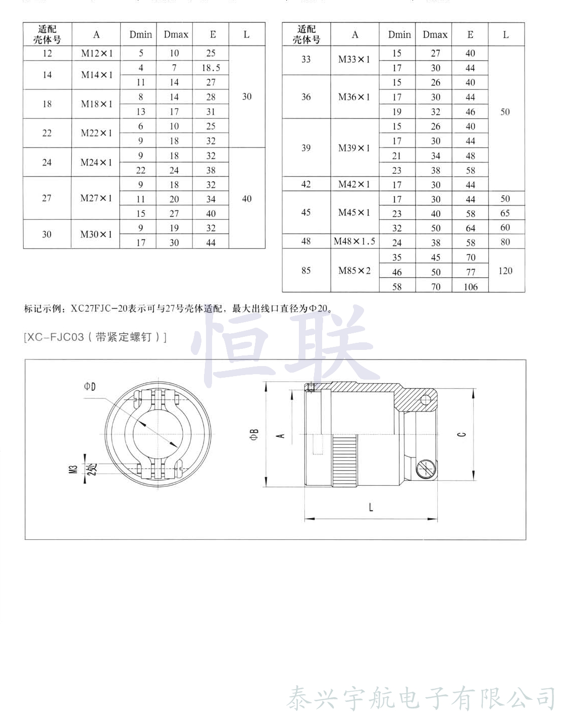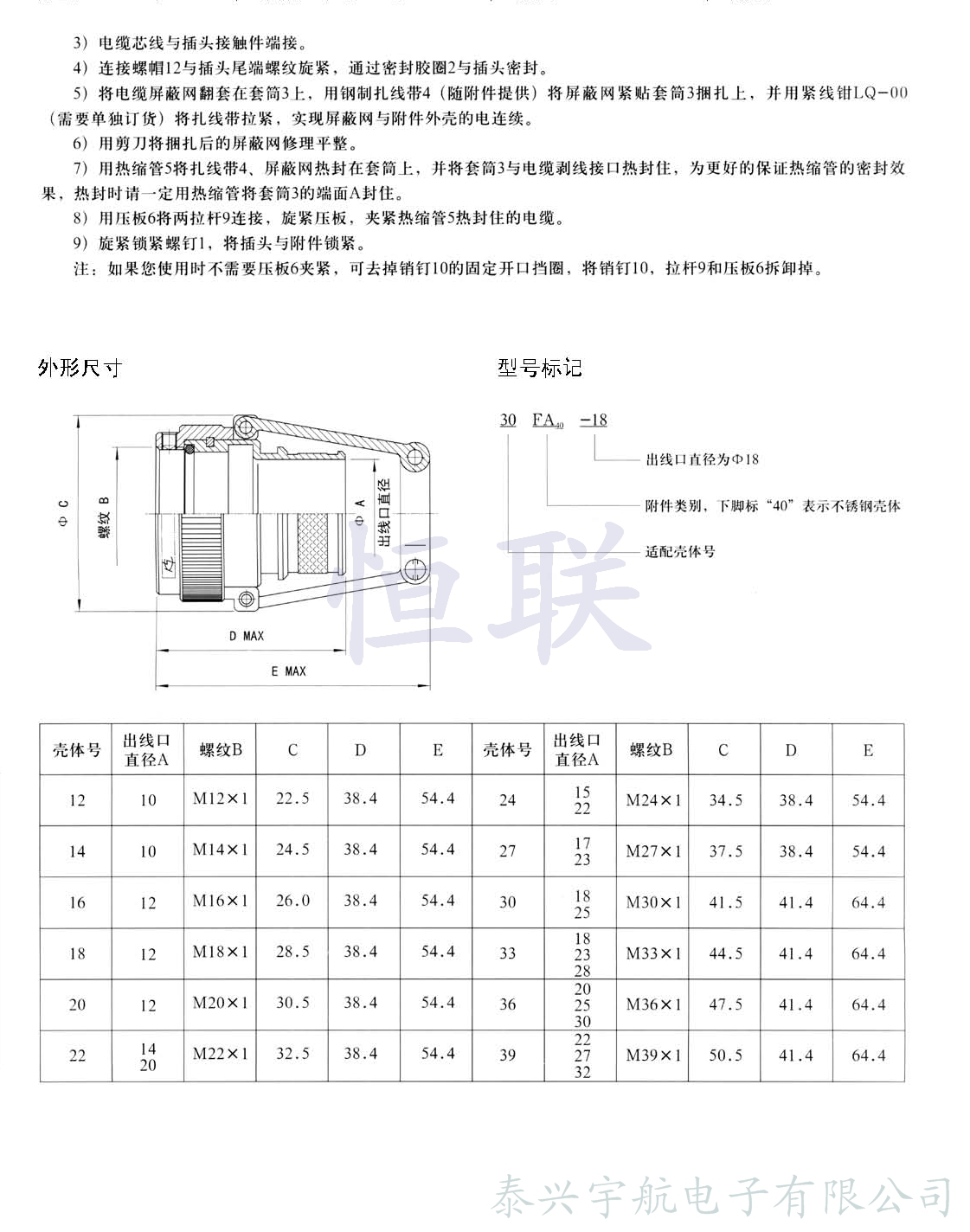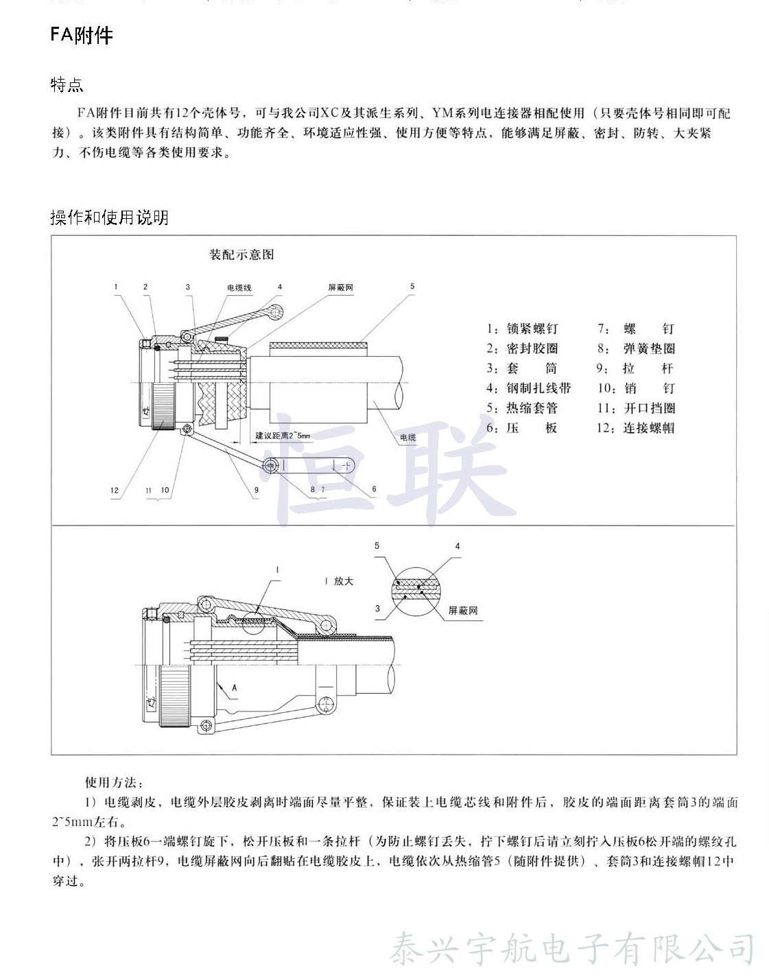 應(yīng)根據(jù)電纜直徑選用本附件。